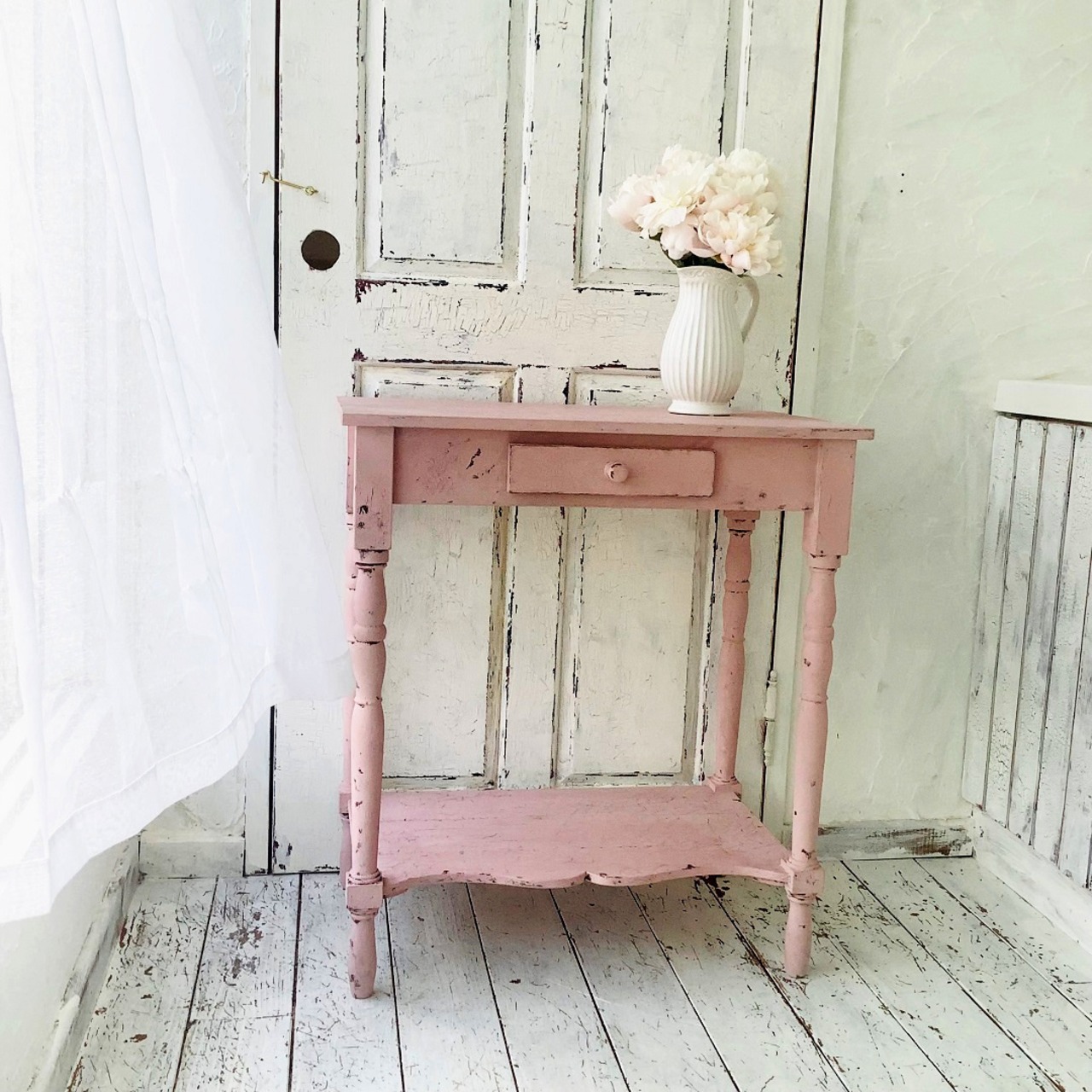 【現品・在庫あり】コンソールテーブル・ピンク・フレンチシック・シャビーシック・フレンチカントリー(#104)