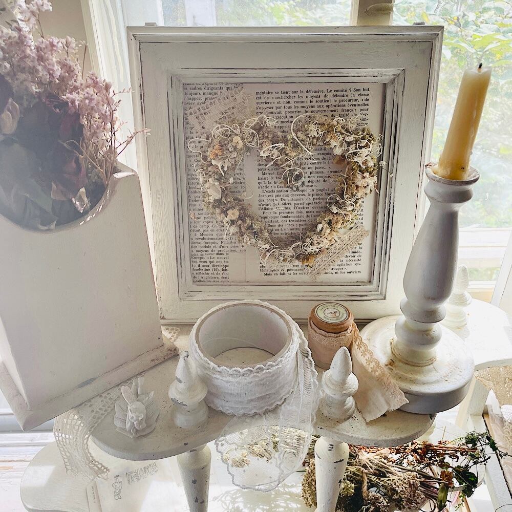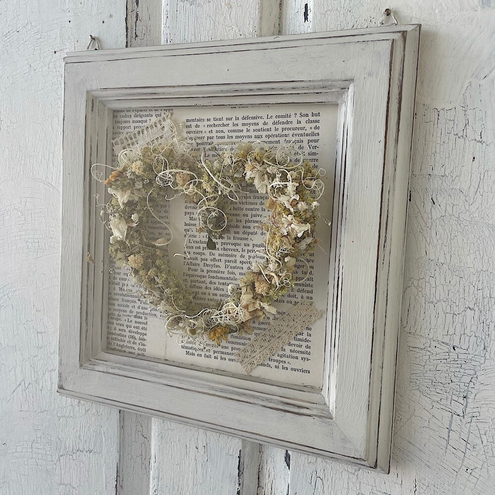 【現品・在庫あり】癒しのハートのリースフレームセット フレンチカントリーインテリア 北海道ハーブ ドライフラワー シャビーシックインテリア