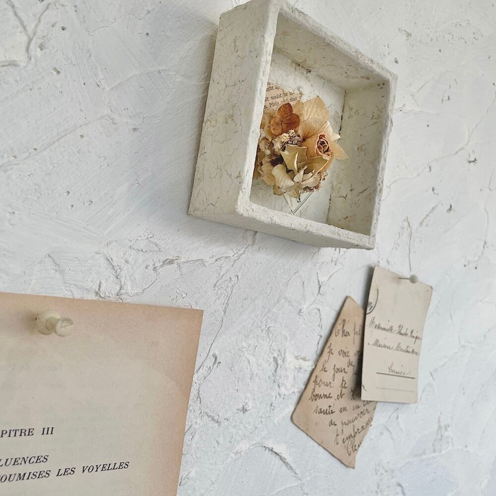 【現品在庫あり】フレンチ雑貨 ちいさな木箱とコロンとかわいい薔薇のミニブーケセット 北海道ハーブ ドライフラワー 壁掛け