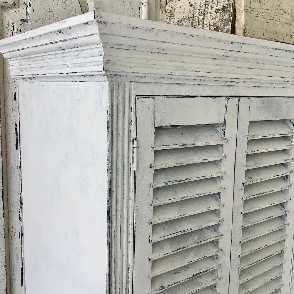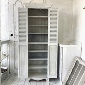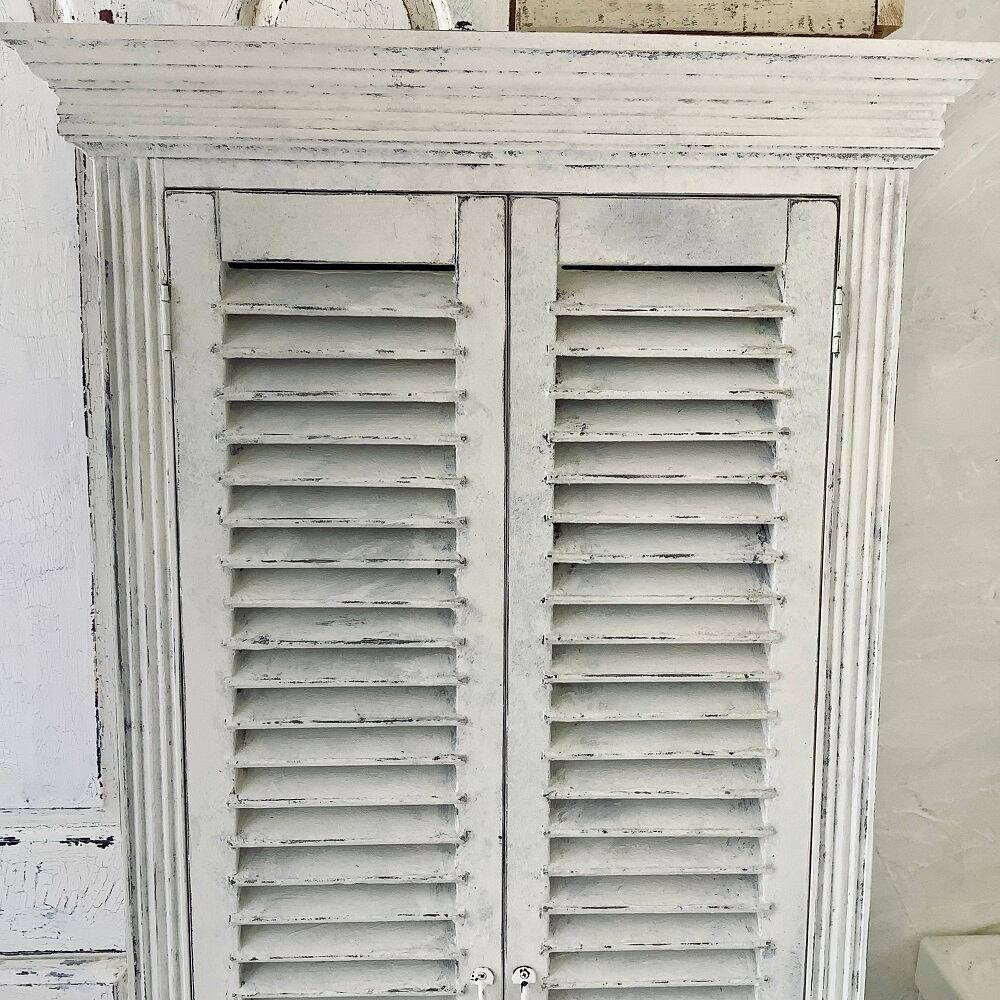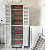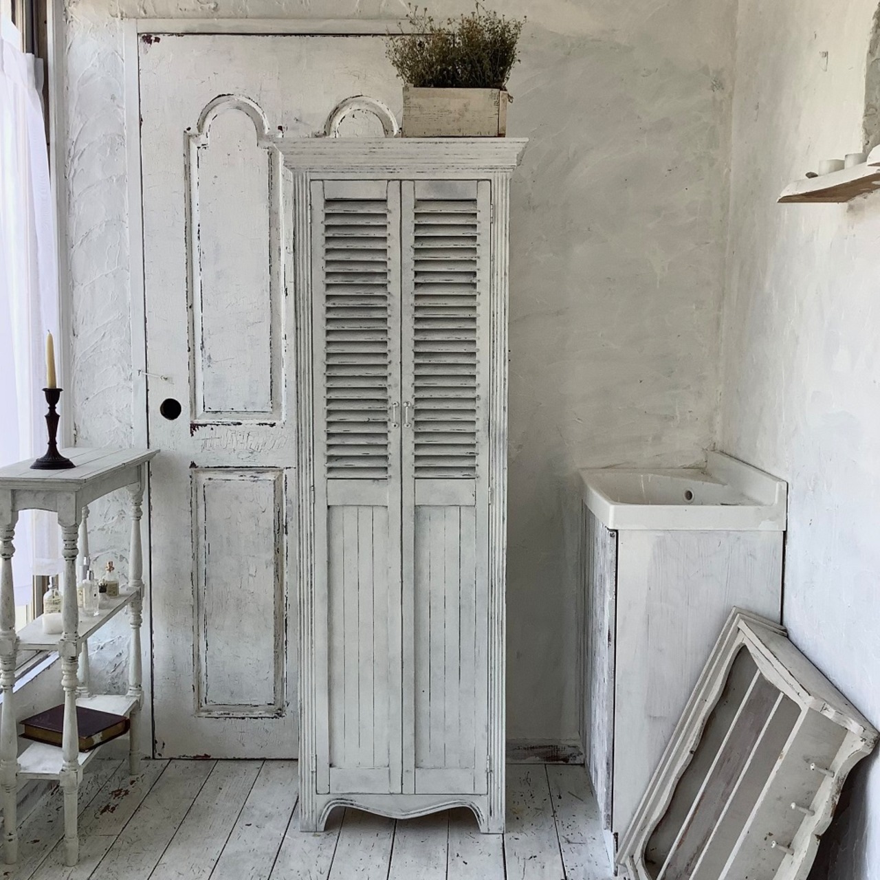 【受注製作】スリムキャビネット・フレンチカントリー・フレンチシック・ルーバー・ホワイト・シャビー・飾り棚(#c02)