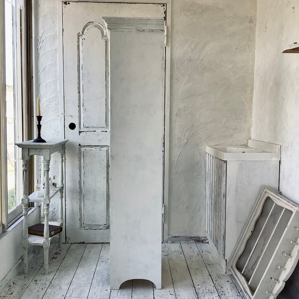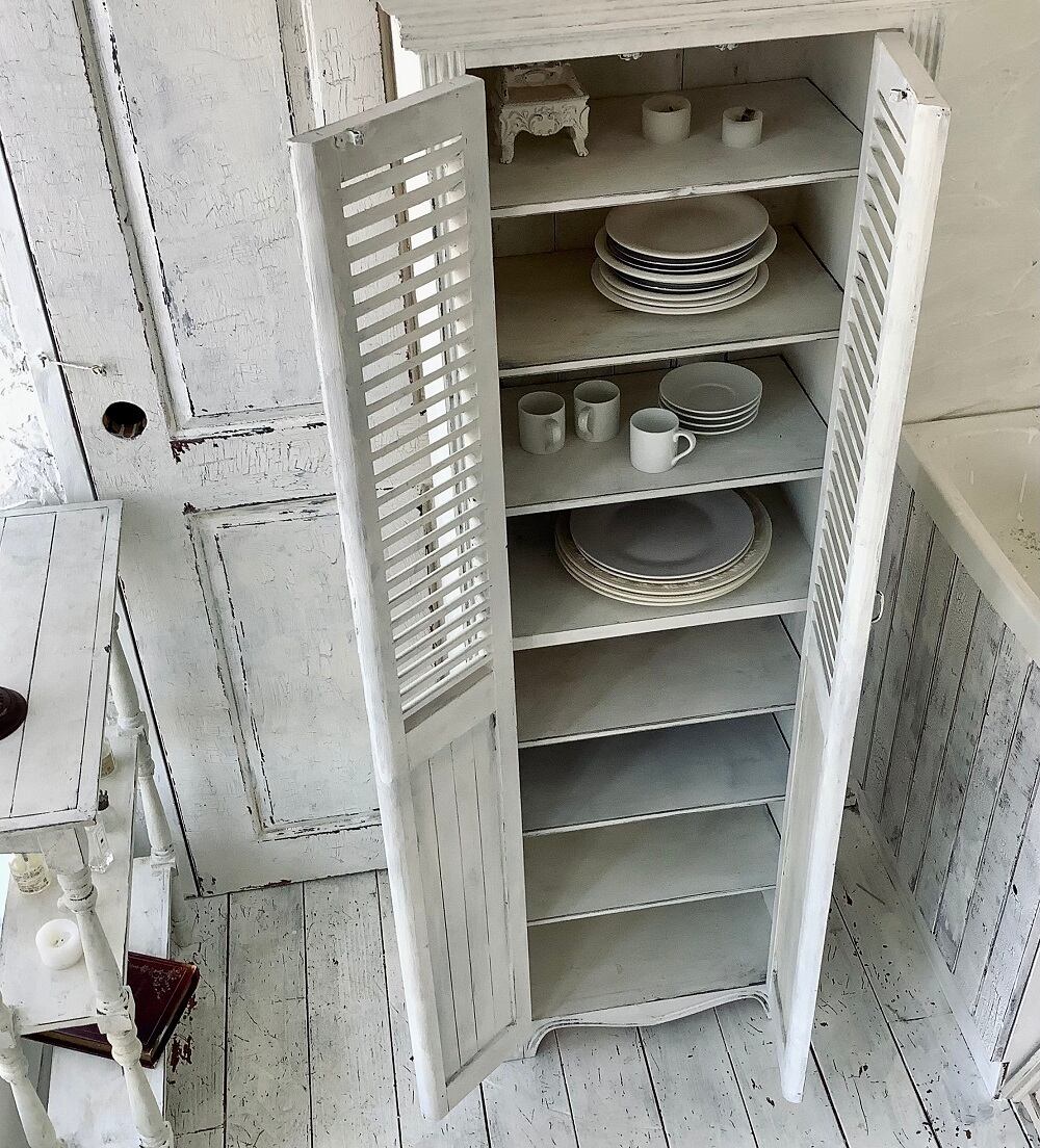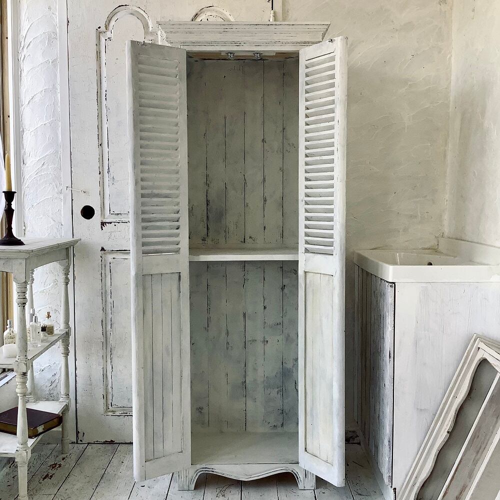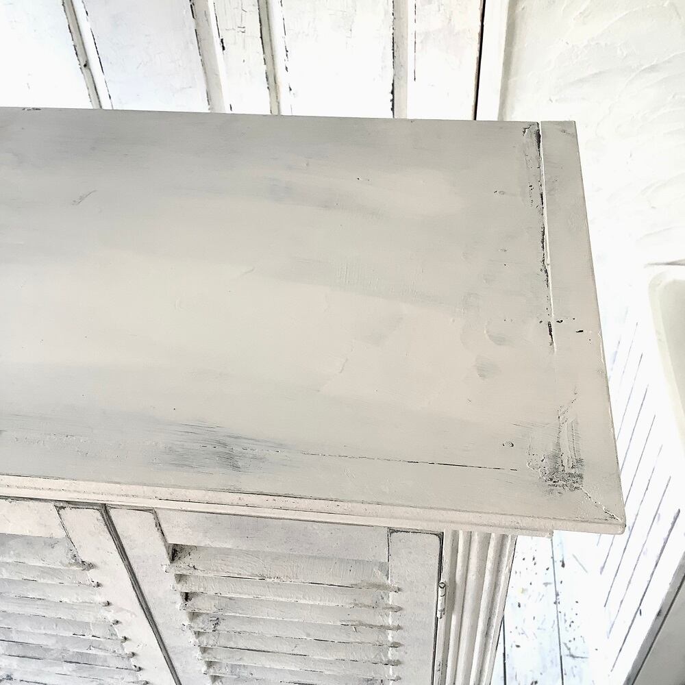 【受注製作】スリムキャビネット・フレンチカントリー・フレンチシック・ルーバー・ホワイト・シャビー・飾り棚(#c02)