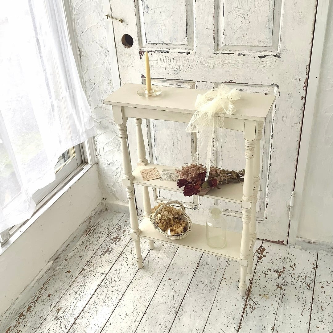 【受注製作】コンソールテーブル・天板フラットタイプ・飾り棚・シェルフ・フレンチ・シャビー・ホワイト (#101)