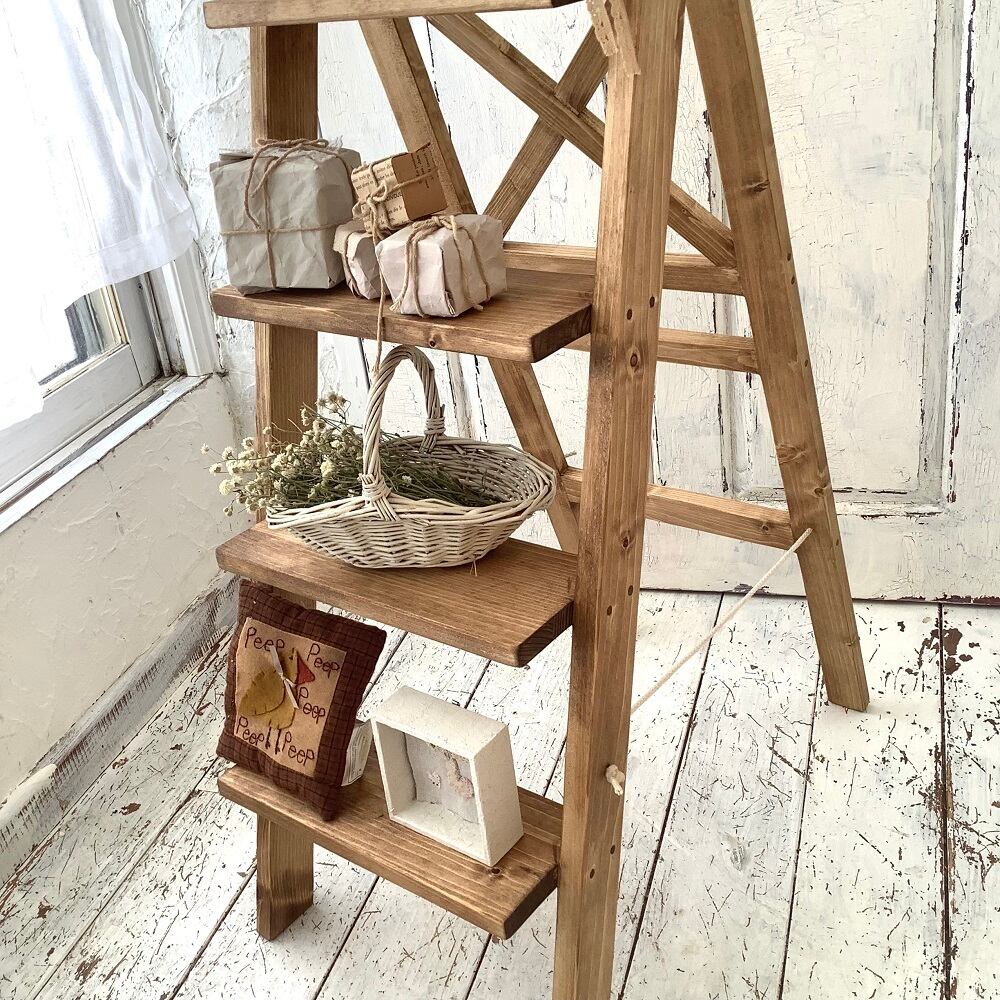 【受注製作】ラダーシェルフ・ラダー・はしご・ディスプレイ・ブラウン・ナチュラルアンティーク・カントリー雑貨