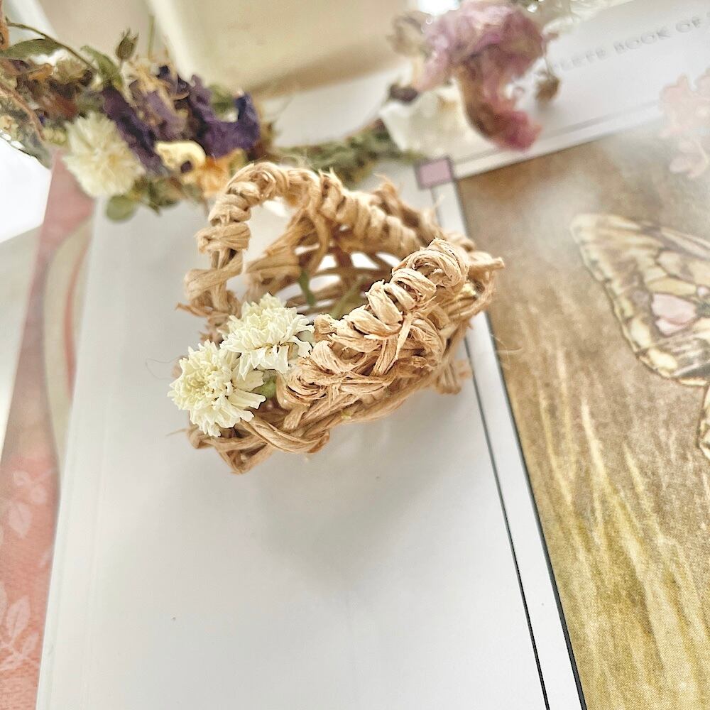 画像のハートのハーブリースとミニかごとミニミニブーケの3点セットがそのままお届けになります。