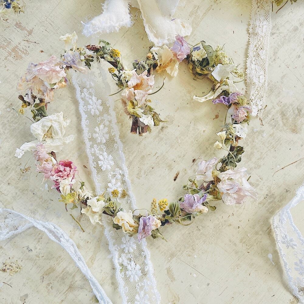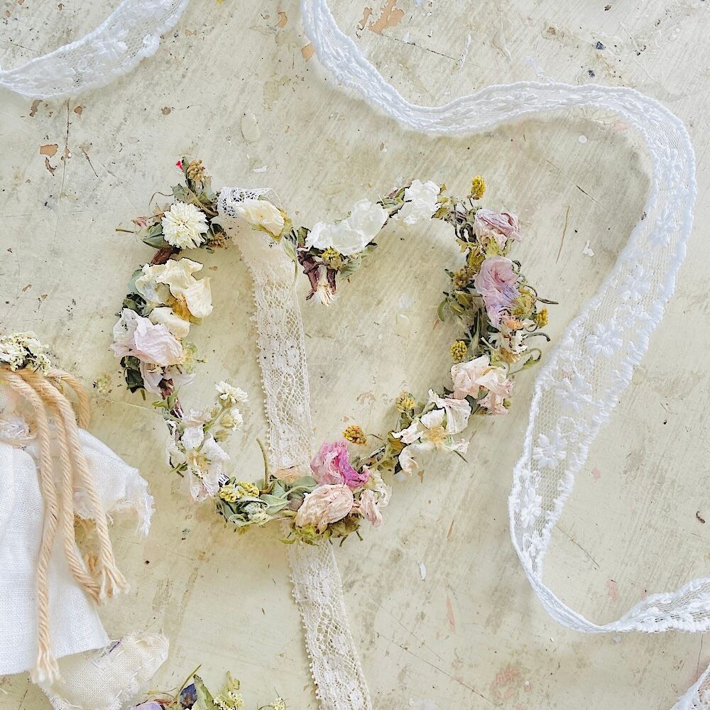 大草原に咲き誇る北海道ハーブのflowerたちのハート型ドライフラワーリース