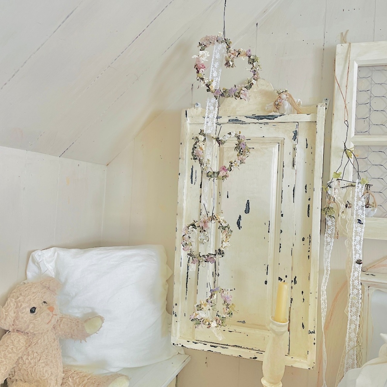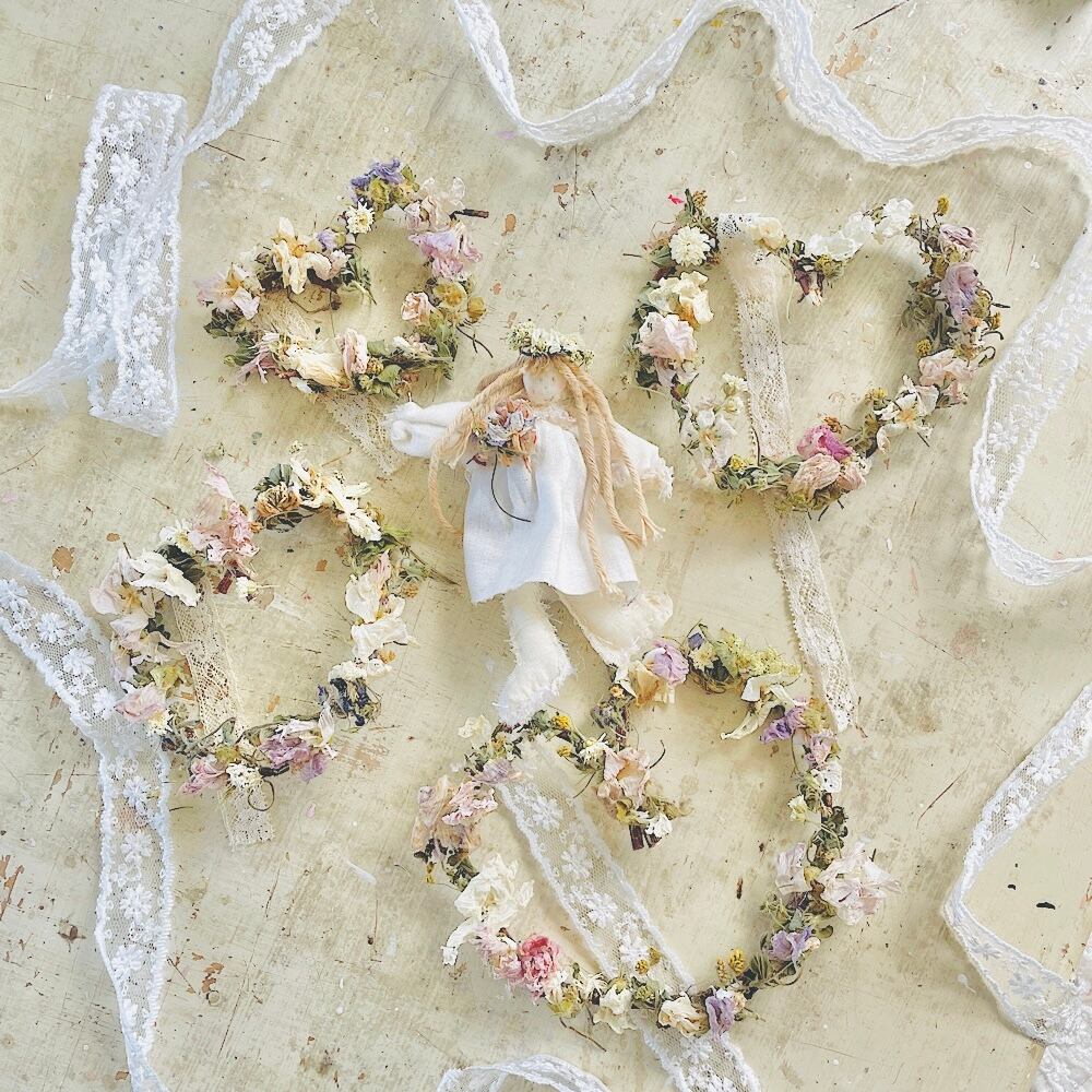 2026年新作【現品・在庫あり】ハート型4個セットドライフラワーリース 北海道ハーブ フラワーケーキ ドライフラワー