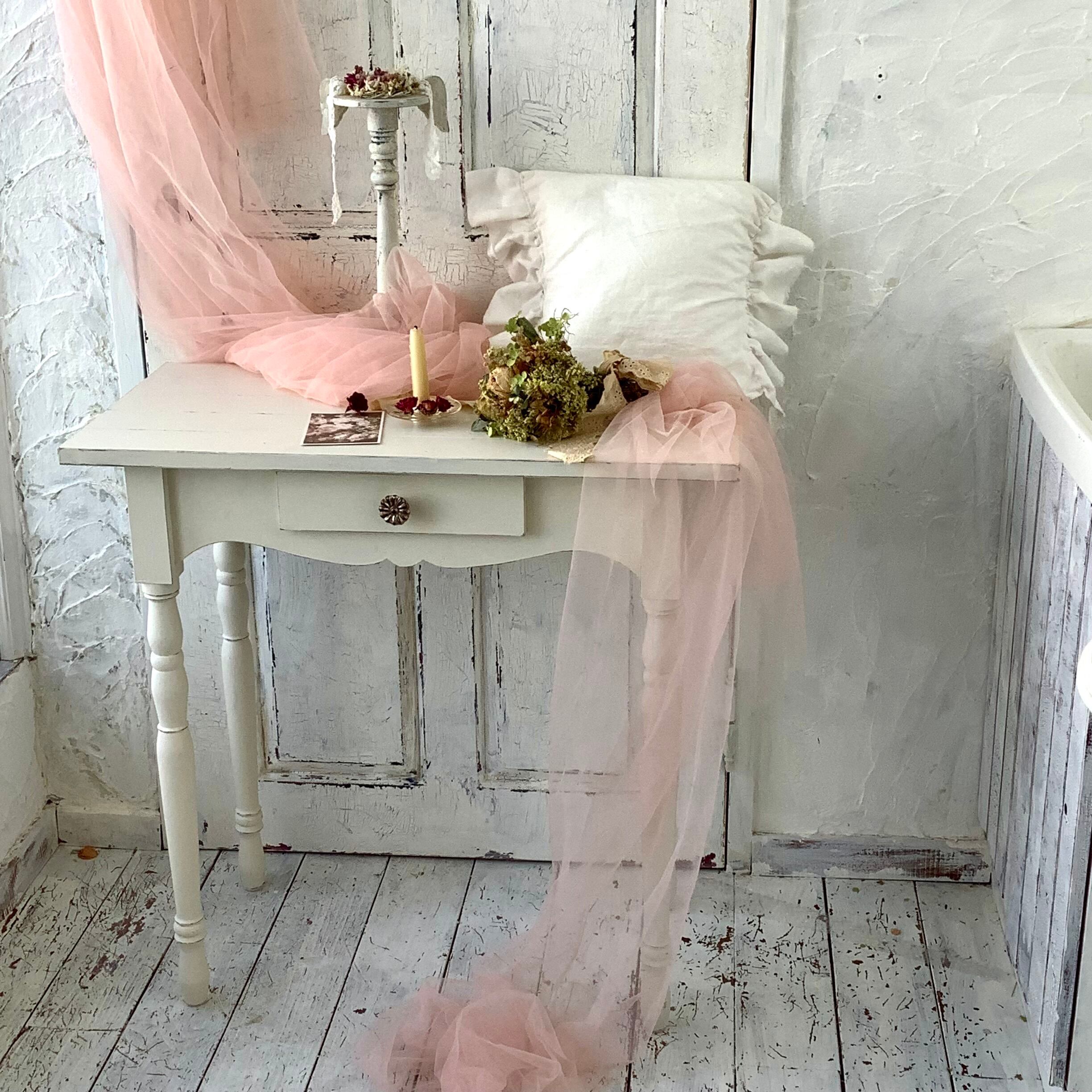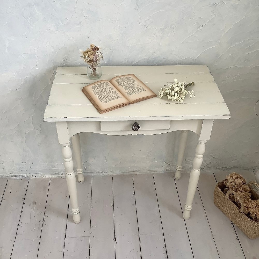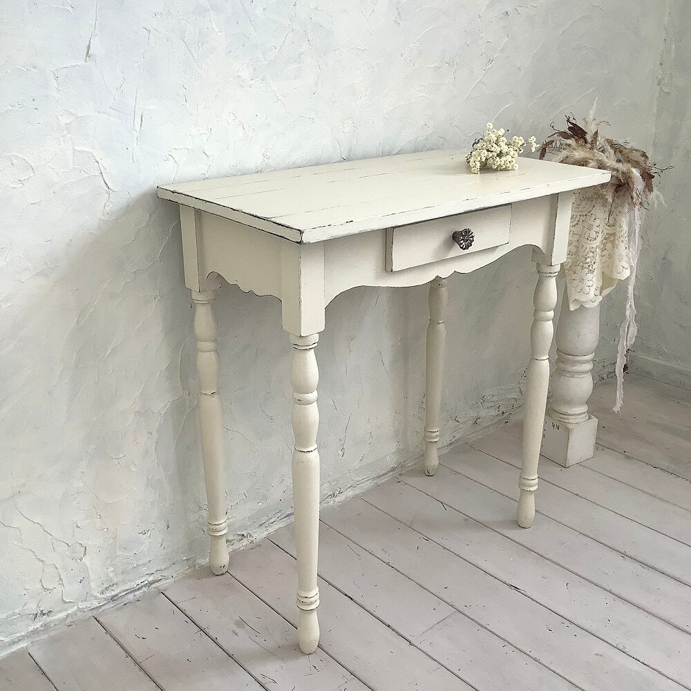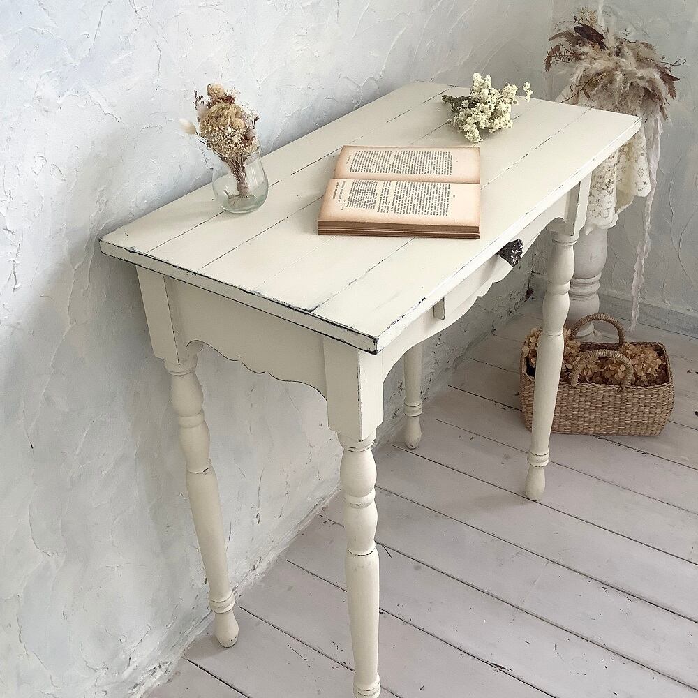 【受注制作】コンソールテーブル・飾り棚・デスク・机・テーブル・フレンチシャビー(#102)イエローホワイト