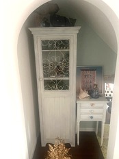 【受注製作】スリムキャビネット・フレンチカントリー・フレンチシック・グレーホワイト・シャビー・飾り棚・戸棚(#c01